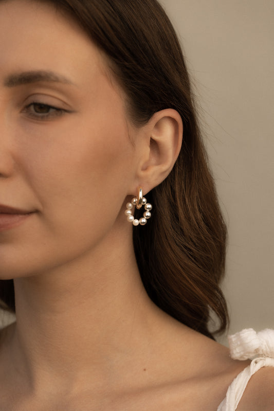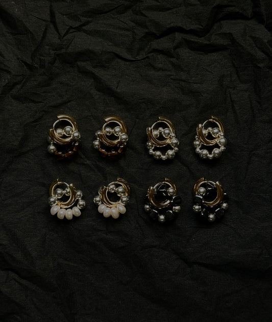The Golden Rod Yellow Glass and Pearl Asymmetical Huggie Hoop Earring